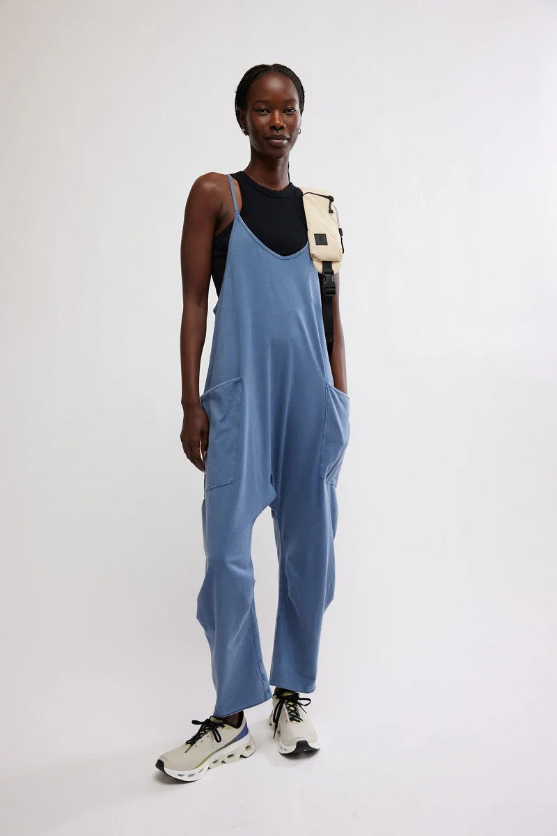 This soft and comfy onesie features a slouchy, relaxed-fitting design with a dropped crotch and convenient side pockets.