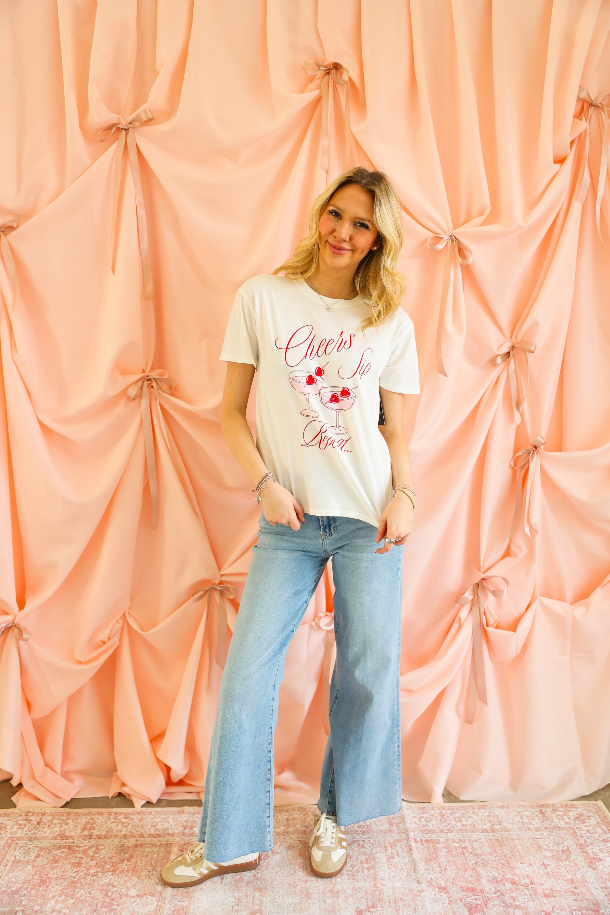 Designed with a relaxed, oversized fit, this soft cotton tee features a playful cocktail graphic that sets the mood for any casual day. Pair it with denim or joggers for an easy, festive vibe.